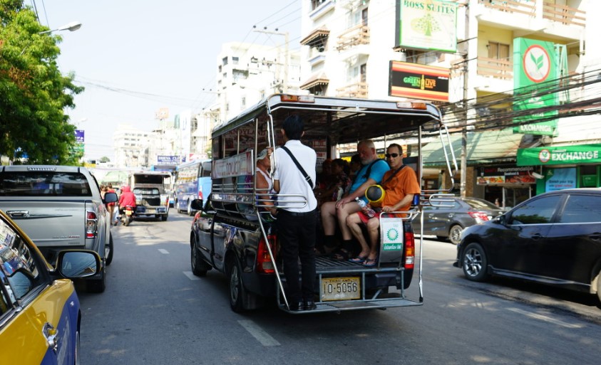 파타야는 대중교통이 좋지 않아 택시비가 엄청 비쌉니다. 그랩을 이용하여도 기본요금이 120밧이기 때문에 보다 저렴한 썽태우를 활용하는게 좋습니다. 썽태우는 트럭을 개조하여 미니버스 형태로 만든것인데요, 거리에서 매우 자주 볼 수 있습니다.