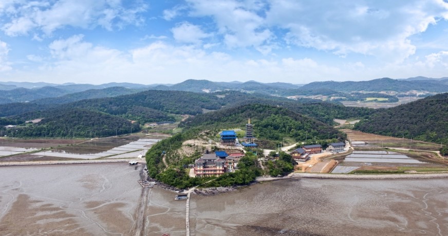 산사 체험 프로그래을 운영하고 있는 안면암은 안면도의 분위기와 찰떡궁합인 명소인데요. 이곳을 안면도 여행코스에 추천하는 이유는 바로 이 사찰에서 여유섬까지 부표로 연결되어 있어 바다 위를 건너할 수 있기 때문입니다.
