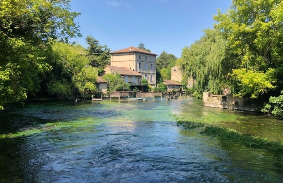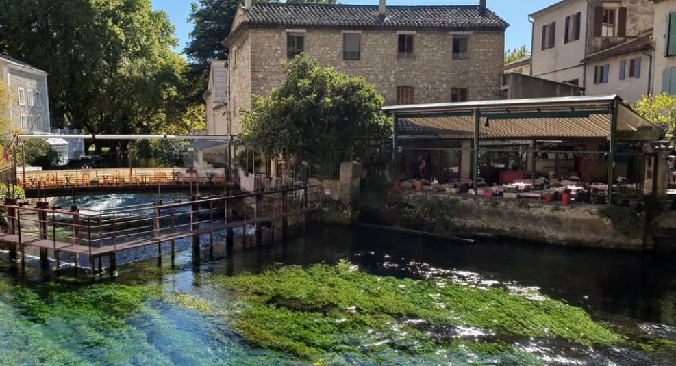 남프랑스 여행에서 초록빛 물의 도시라 불리는 퐁텐 드 보클뤼즈를 빼놓을 수 없는데요. 이곳에 도착하면 마을 초입에서 부터 초록빛깔의 물을 감상할 수 있는데요. 물 밑에 수많은 수초들이 자생하고 있어 물 전체가 초록빛을 띄고 있습니다.