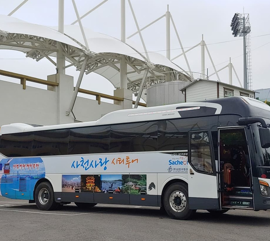 사천시는 문화광광해설사의 맛깔스러운 해설을 곁들인 '사천사랑 시티투어'를 진행하고 있습니다. 2개 광역코스와 문화광관코스, 역사탐방코스, 체험관광 코스 등이 추가되어 다양한 관광이 가능합니다. 탑승요금은 성인 5천원, 어린이 2천원이고 유료관광 입장료, 체험비, 식대 등은 이용자 부담입니다.