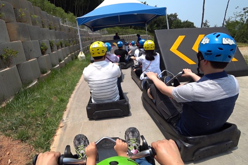 스카이라인 루지는 작은 썰매형식의 카트라고 할 수 있는데요, 약 2km의 구간을 타고 순회하는 것입니다. 데이트 코스로도 좋고 가족여행 코스로도 손색이 없으며 어른들이 즐기기에도 충분한 스릴이 있어 오히려 20대, 30대에 인기가 더 많다고해요.