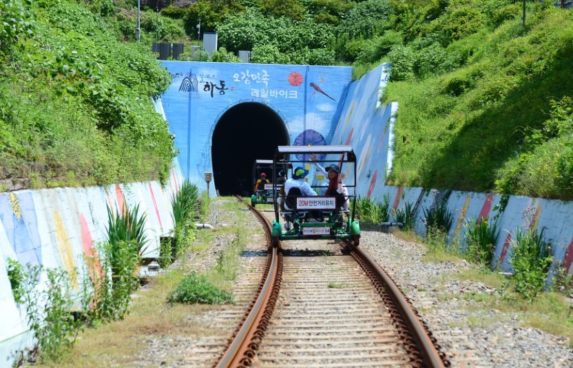 꼭 강원도로 가야 레일바이크를 탈 수 있다? 하동에도 레일바이크가 있습니다! 하동 북천쪽에있는 레일바이크는 하동의 관광산업을 위해 폐쇄된 하동구간의 철길을 레일바이크로 산업화했다고 합니다.