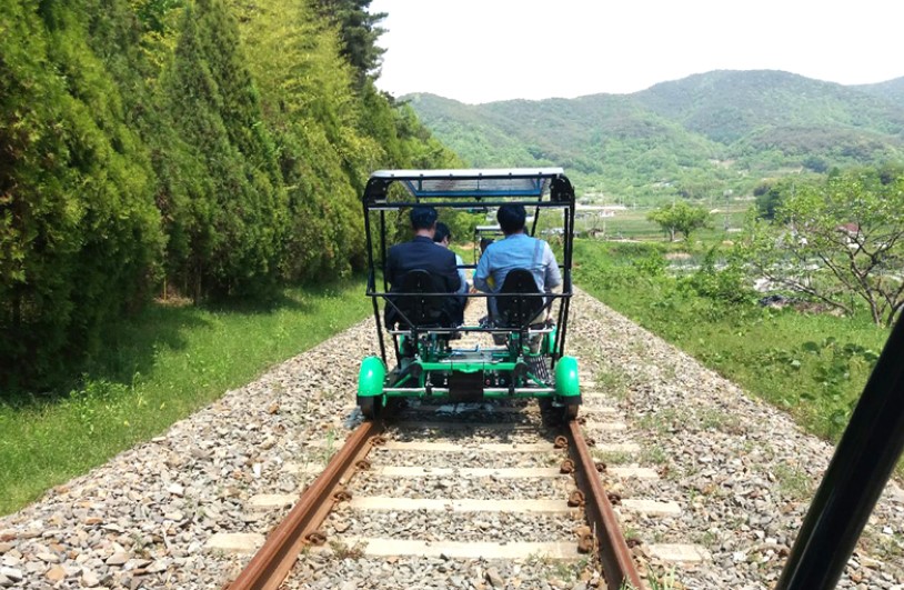 총 구간은 5.3km로 그리 짧지는 않은데요, 4명이 탈 수 있는 바이크가 45대, 2인승이 25대로 사람이 많아도 충분히 소화할 수 있다고해요. 특히 지어진지 얼마 안되었기 때문에 다른 지역의 레일바이크와 달리 최신형으로 새로운 시설의 바이크를 경험하는 것도 색다를 수 있습니다.