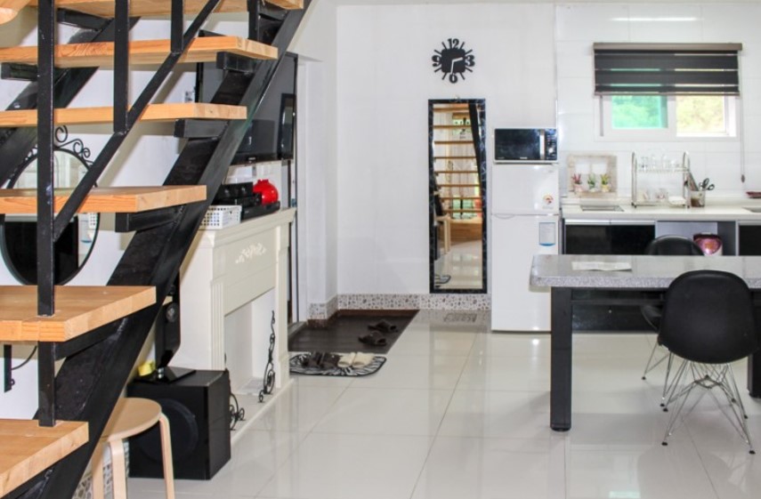 화이트펜션 1층에는 카페가 자리하고 있으며 DVD도 빌릴 수 있고 보드게임도 있어 지루할 부분은 없는것 같아요. 실내는 조금 낡은 느낌을 주지만 그렇다고 더럽고 그런것은 아니어서 평균 만족도를 넘나듭니다.