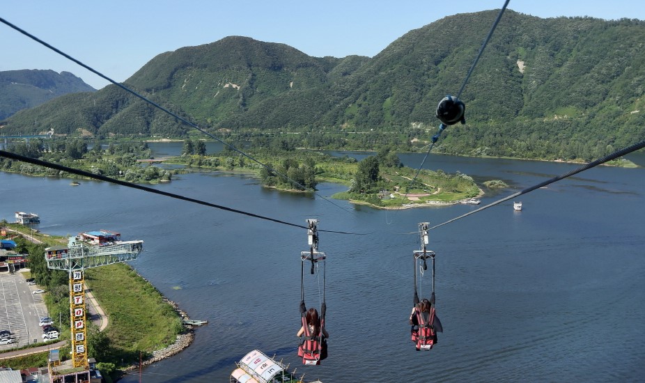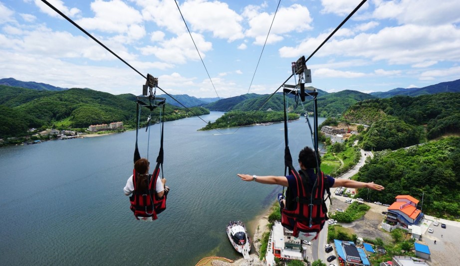 남이섬은 섬인 만큼 배를 타고 들어가야하지만 남이섬에 가는 또 다른 특별한 방법이 존재합니다. 바로 하늘을 날아 들어가는 것인데요. 이런 이색방법이 가능한 이유는 하늘을 날지 못하는 사람을 날 수 있도록 도와주는 짚와이어가 있기 때문이죠.